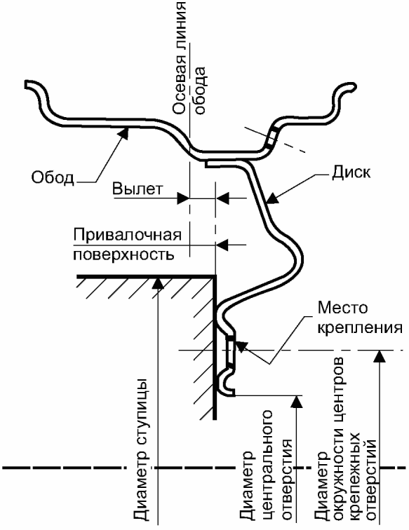 3.1 вылет колеса: Расстояние от привалочной поверхности диска до осевой линии обода.
