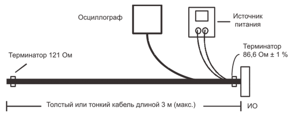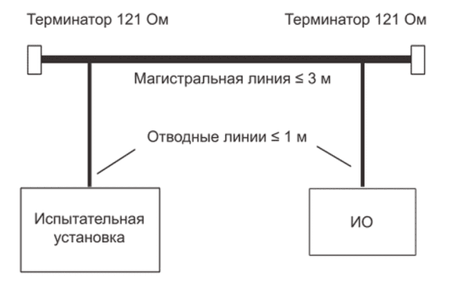 ID MAC ИО должен быть установлен на 0. К ИО можно применять любое необходимое внешнее питание. Для этого ИО должно быть физически соединено с сетью. Испытательная установка затем должна быть соединена с сетью и должна записывать коммуникационный трафик.