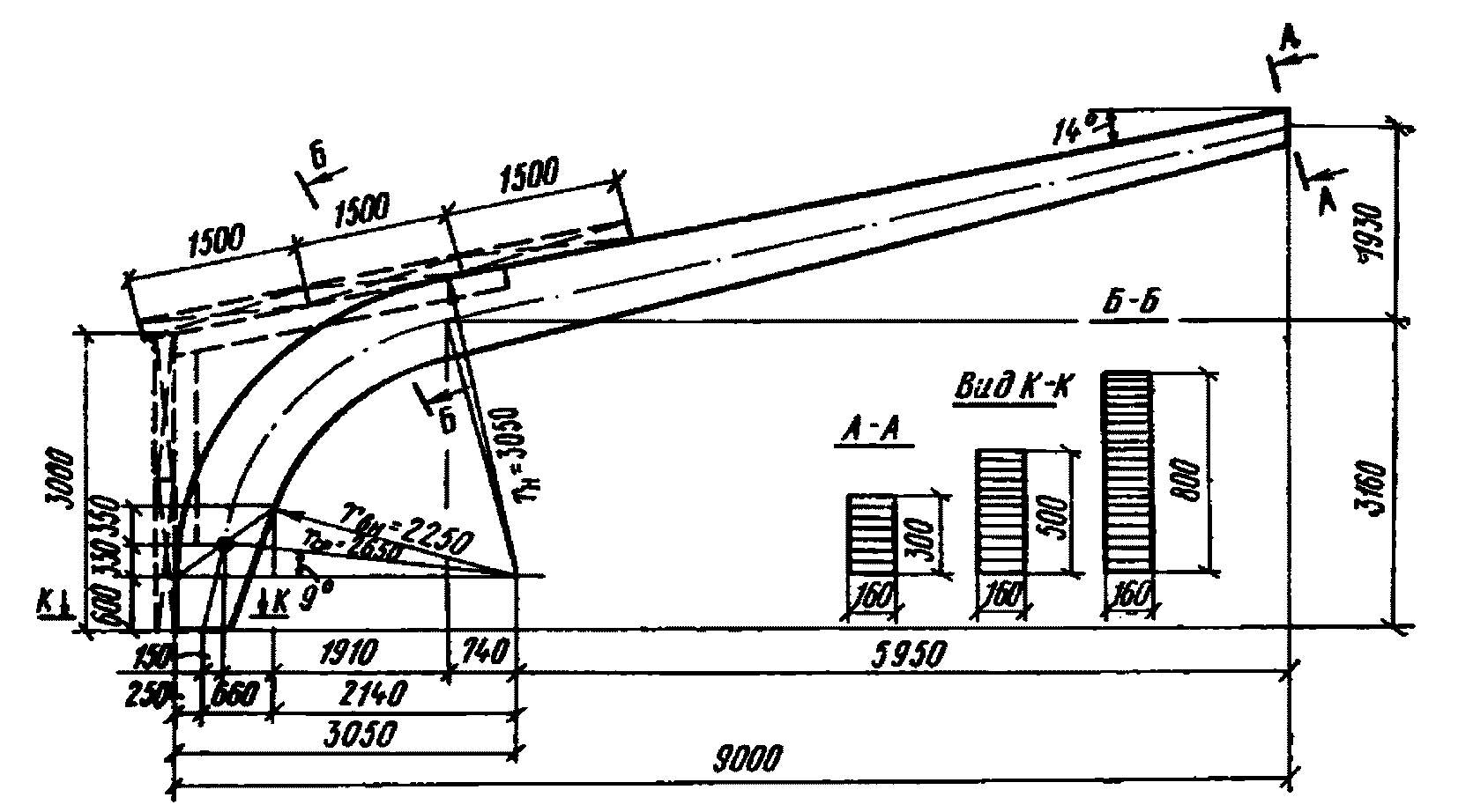 3. Трехшарнирные дощатогнутоклееные арки прямоугольного сечения | 2,5 - 4 |