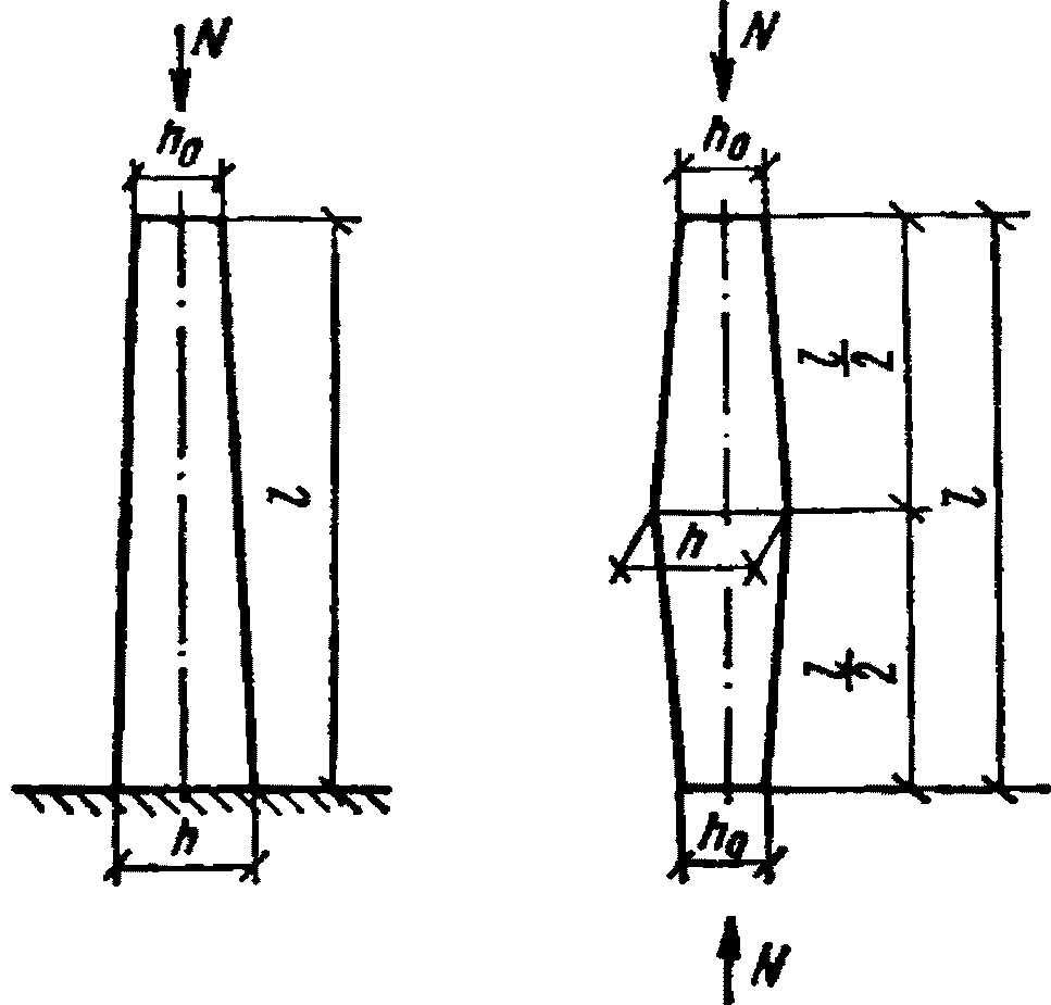 для верхнего пояса (в стадии установки конструкций на опоры и временного раскрепления из рабочей плоскости) равной наибольшему расстоянию между точками закрепления обжимающими траверсами или временными связями (оттяжками) и опорными анкерными болтами.