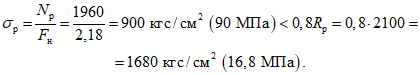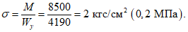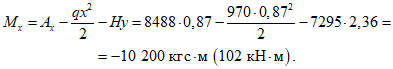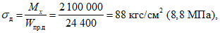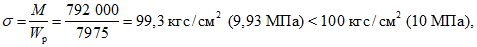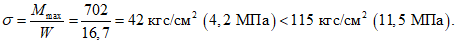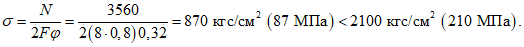Изгибающий момент в накладке Mн = 420(8 - 1) = 2940 кгс·см (29,4 кН·см).