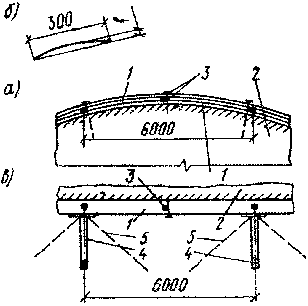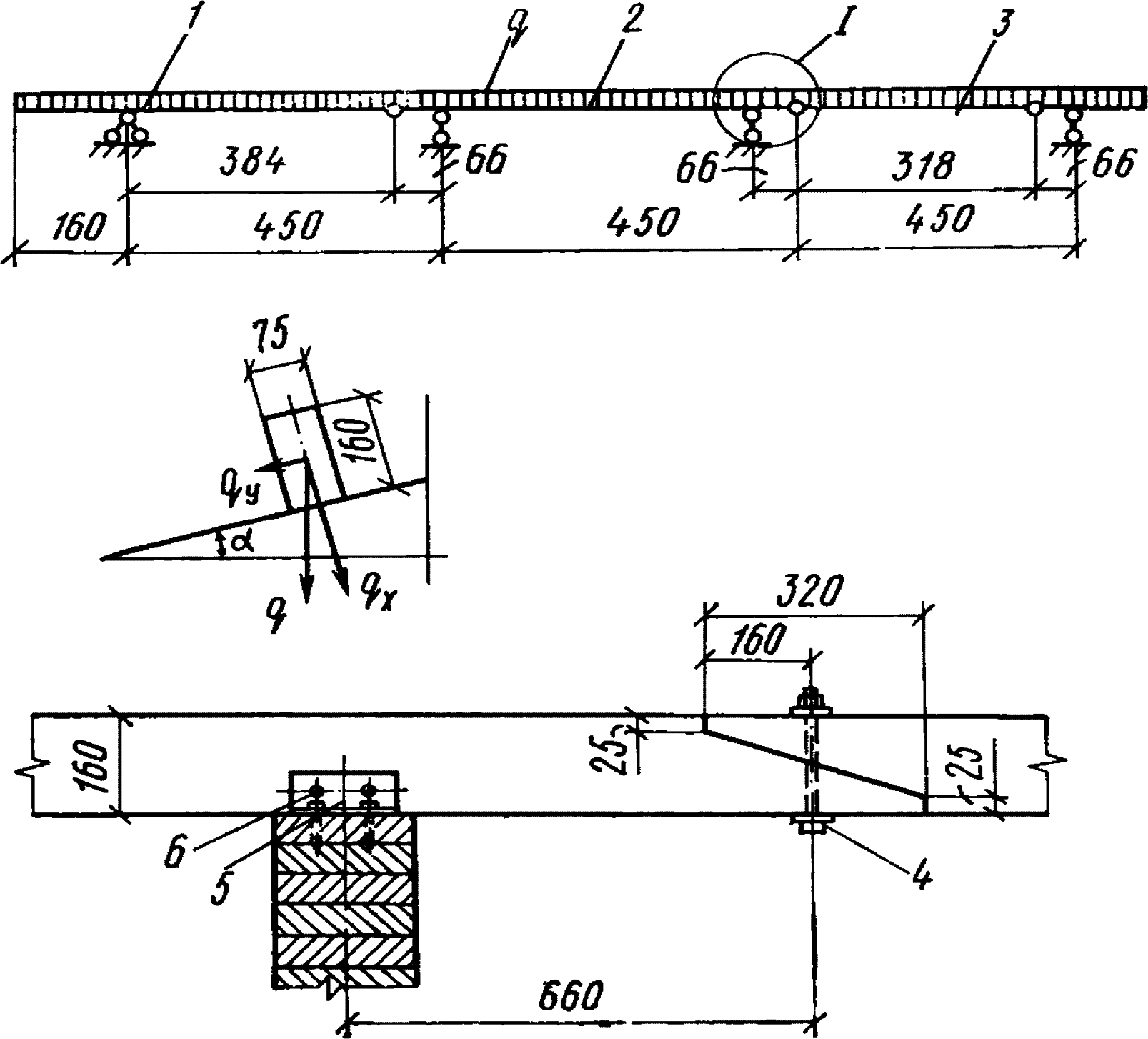3. Сплошные плоские конструкции в виде дощатоклееных трехшарнирных арок и рам с опиранием на фундаменты, монтируемые целиком, проверяются расчетом при кантовке и раскреплении временными связями, а в случае монтажа полуарками и полурамами с временной промежуточной опорой в середине пролета рассчитываются по стадии временного крепления связями.