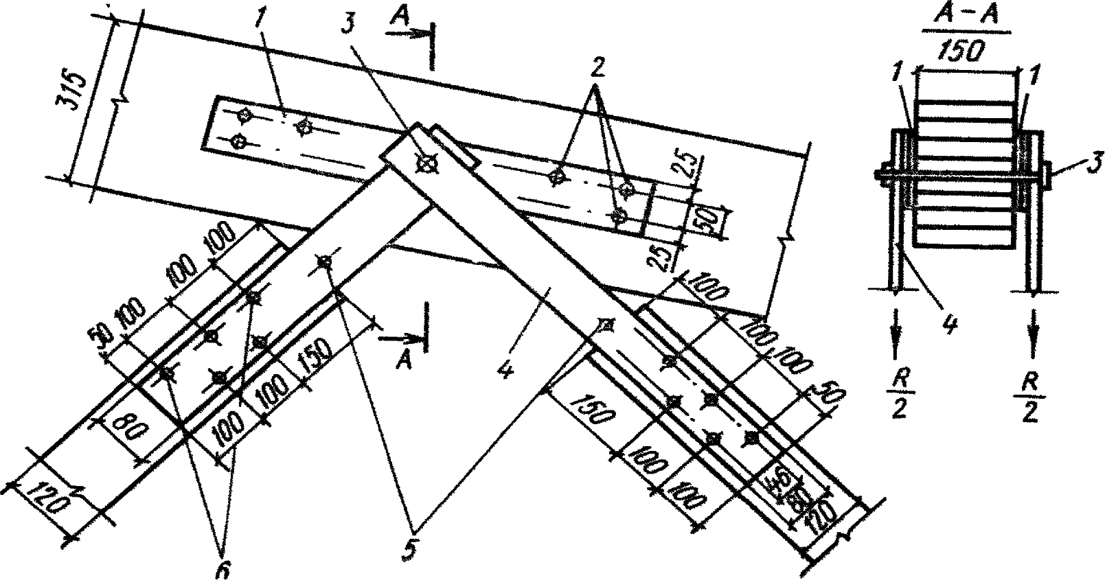 6 | | Решетка - из брусьев (цельных или дощатоклееных) и стальных тяжей |