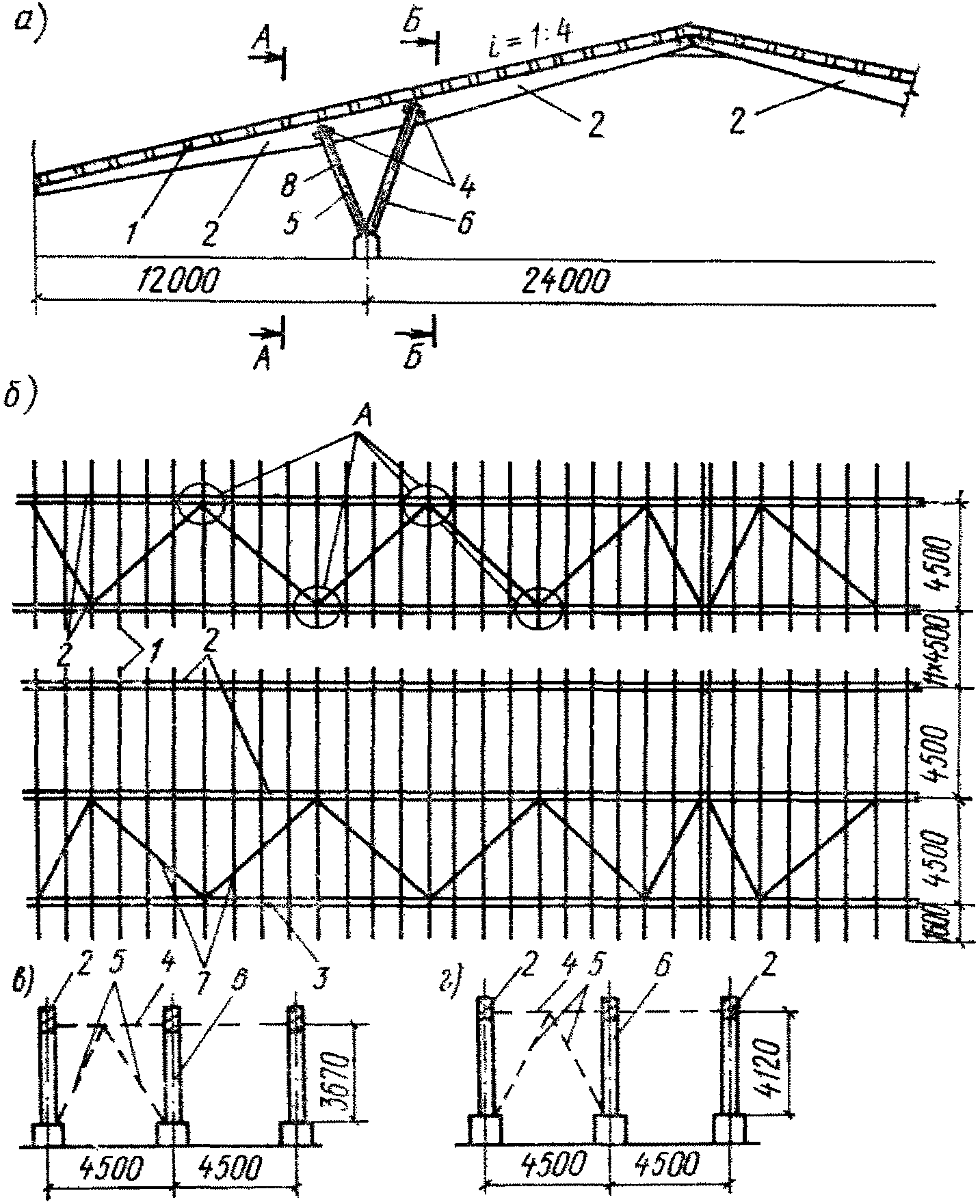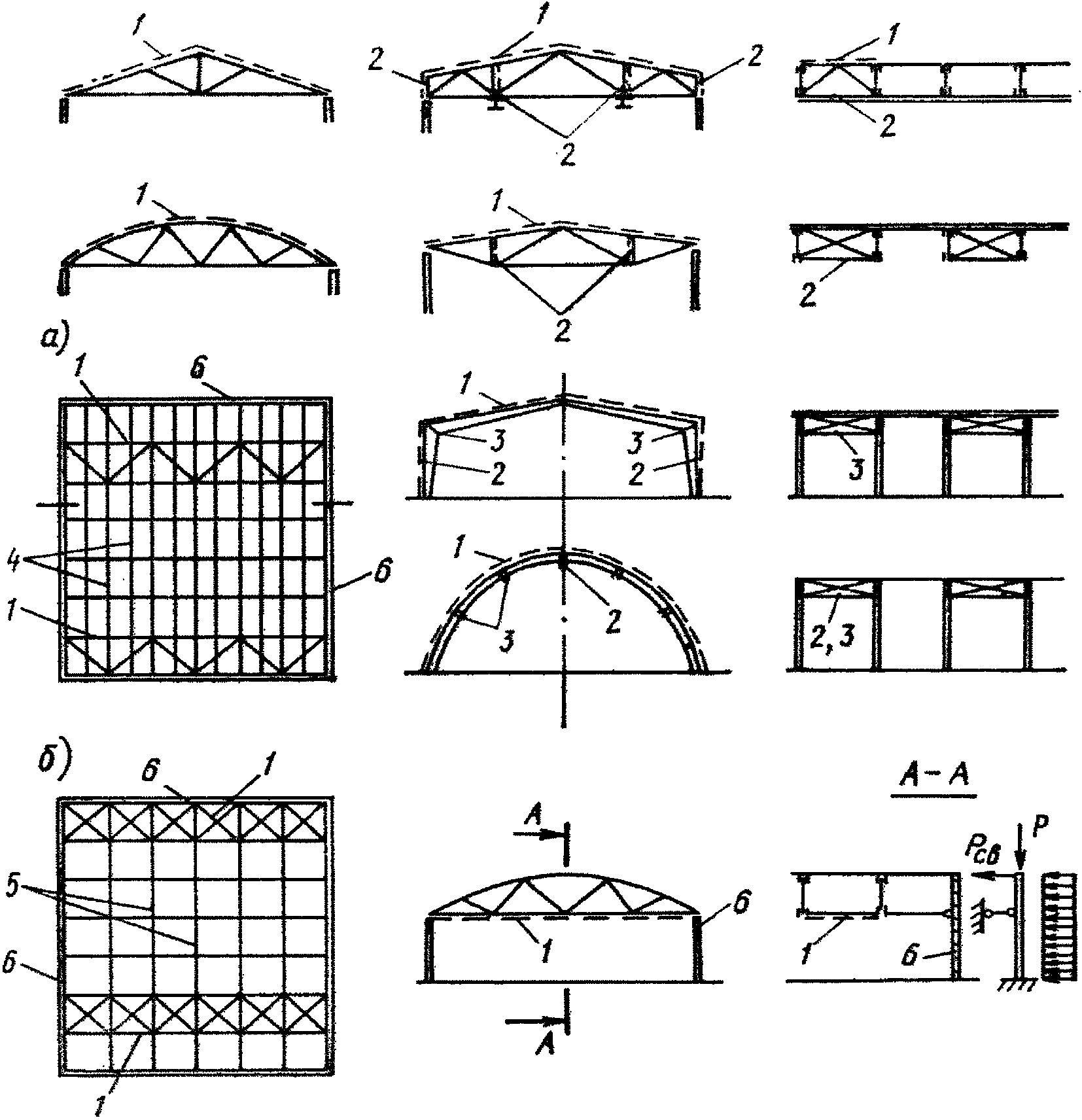 4 | | Рамы типов 2, 5 и 6 собираются из стоек, ригелей и подкосов на месте строительства |
