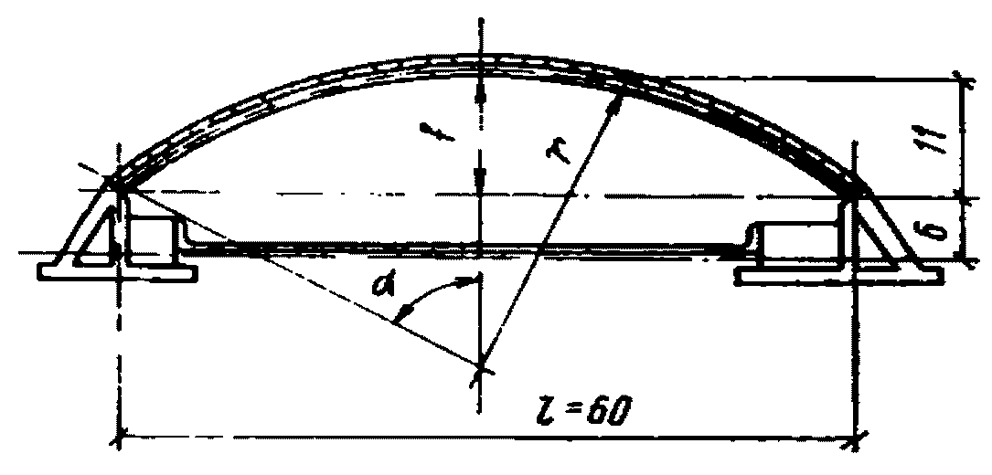 5. Монтажная гибкость деревянных поясов балок, ферм и арок из рабочей плоскости с учетом возможного повышения жесткости за счет оснастки (траверс и других средств) не должна превышать: