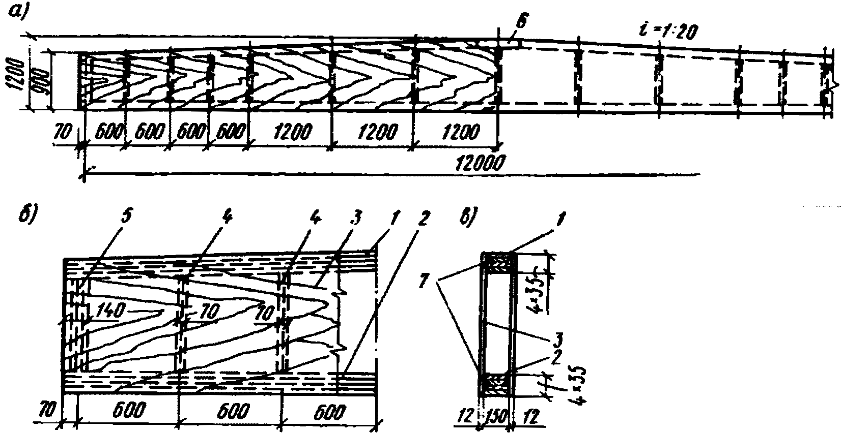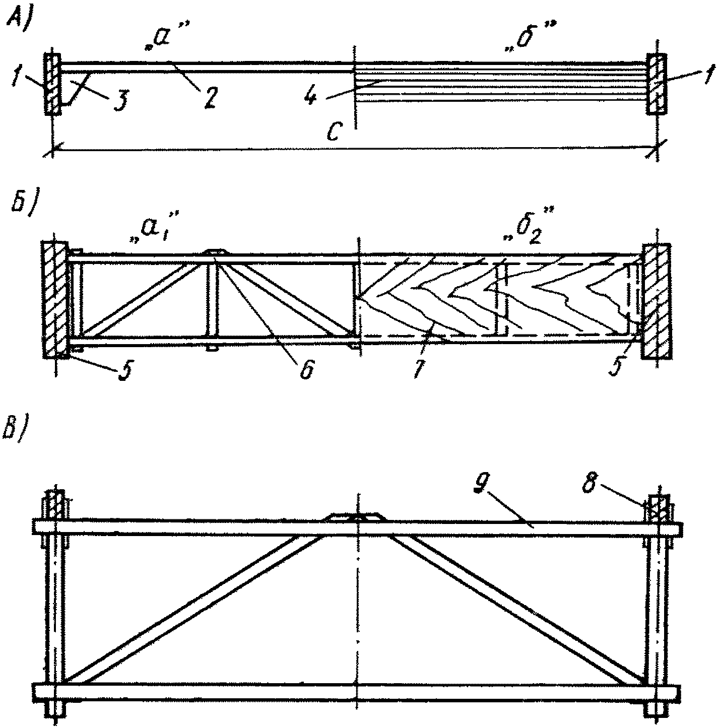 | Балки | Балки всех типов с индексом "а" - прямоугольного сечения из массивной клееной древесины (дощатоклееные). Балки с индексом "б" - двутавровые или коробчатого сечения с поясами из клееной древесины и плоскими фанерными стенками, а с индексом "в" - с волнистой фанерной стенкой (клеефанерные) |