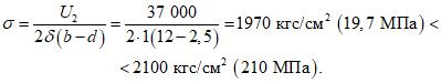 В каждом ряду поставлено по два болта, растягивающие напряжения в которых