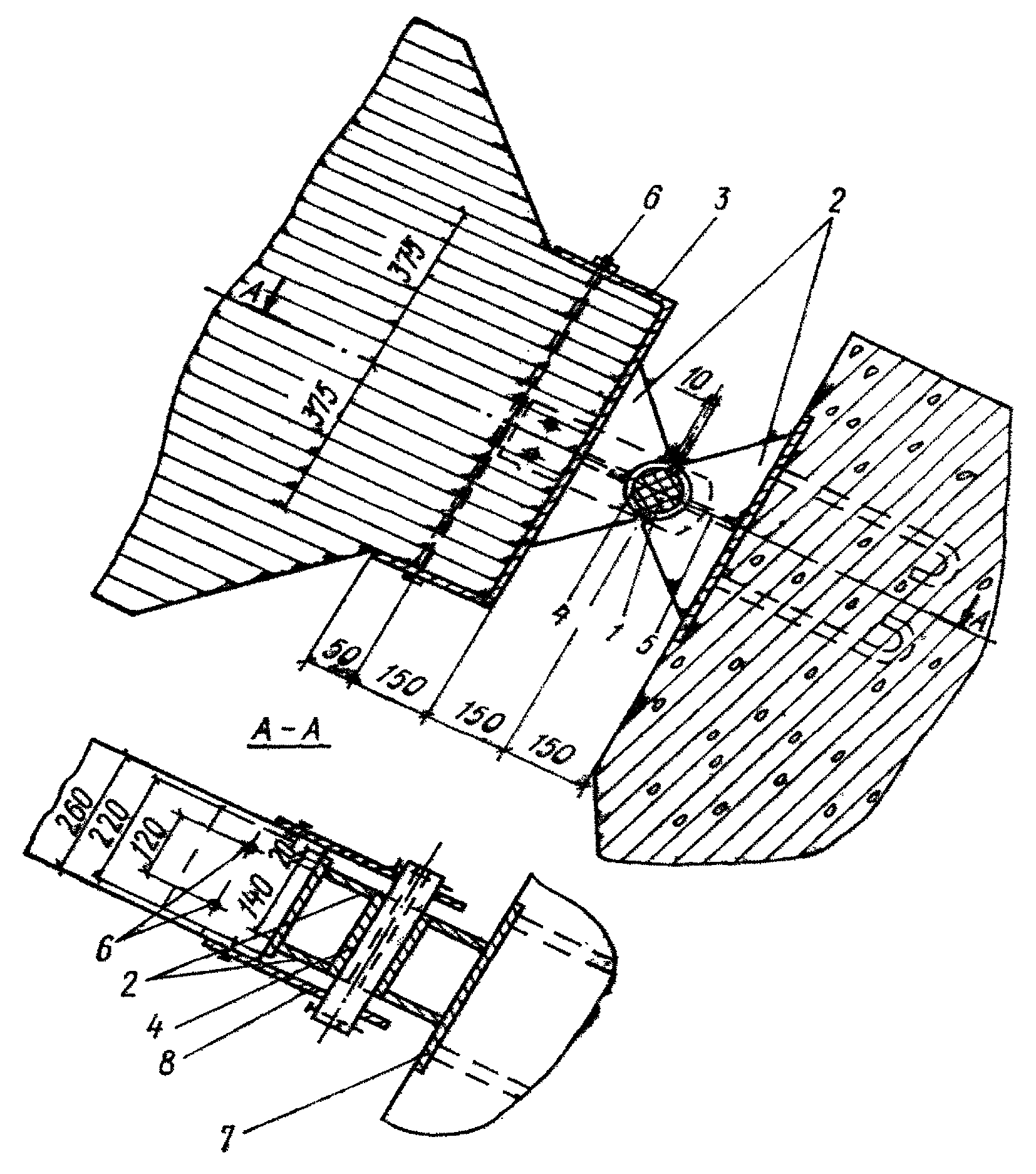 Учитывая большие габариты конструкции и неизбежное возникновение при монтаже статических и динамических нагрузок, не поддающихся учету, накладки присоединяем конструктивно 12 болтами диаметром 12 мм,