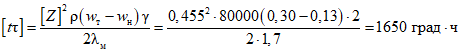формуле (6), учитывающей фазовые превращения воды, определяют допускаемое значение произведения средневзвешенной отрицательной температуры поверхности земляного полотна