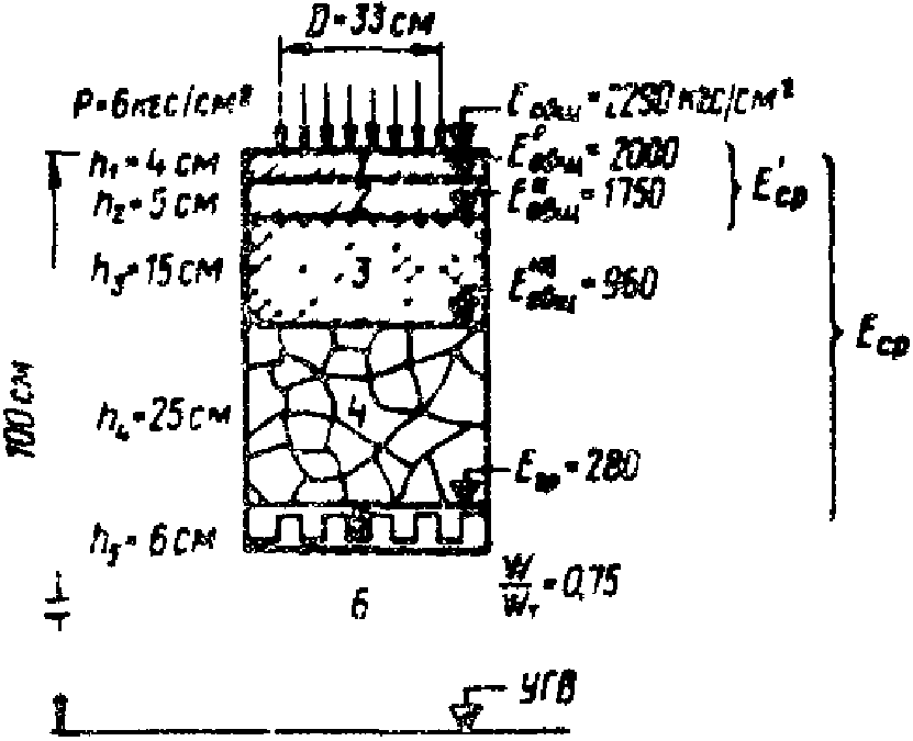 1 | Асфальтобетон верхнего слоя | 15000 | 4 | 0,12 | Eобщ = 1950 | - | - | - | 0,99 | - | - | - |