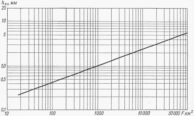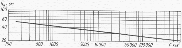 где Hi - высота поверхности горизонтального сечения (горизонтали), м; Fi+1 - Fi - площадь между двумя соседними горизонталями; F - общая площадь водосбора;