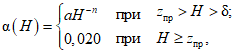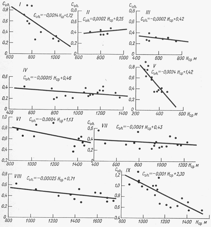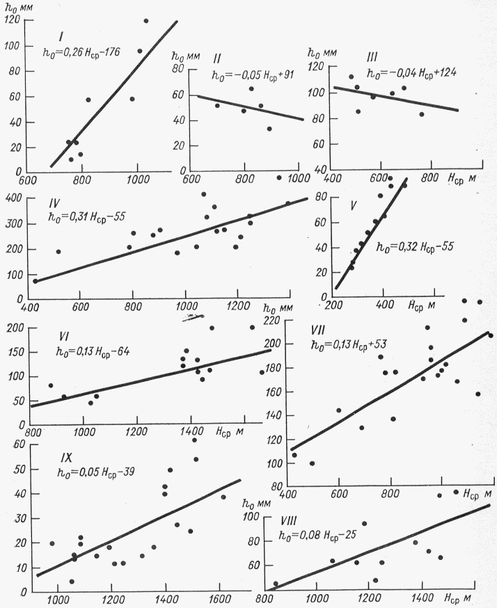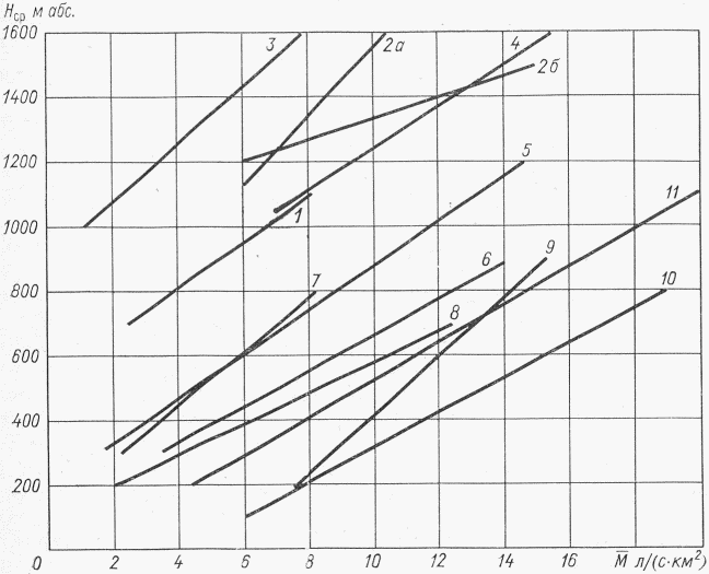 4) средней высоты водосбора H в метрах над уровнем моря, определяемой либо непосредственно по гипсографической кривой водосбора, либо по формуле