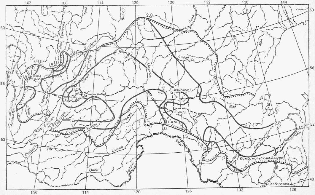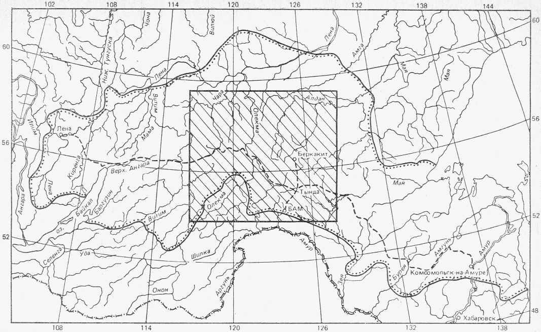 В Рекомендациях излагаются методы расчета основных гидрологических характеристик, а также дополнительных характеристик, имеющих большое значение для оценки режима речного стока в зоне хозяйственного освоения БАМа (рис. 1.1) как при наличии данных гидрометрических наблюдений достаточной продолжительности, так и при их недостаточности. Вместе с тем наибольшее внимание уделено методам расчета гидрологических характеристик при отсутствии данных гидрометрических наблюдений. Отдельные главы посвящены вопросам оценки продолжительности перемерзания рек и наледного регулирования стока.